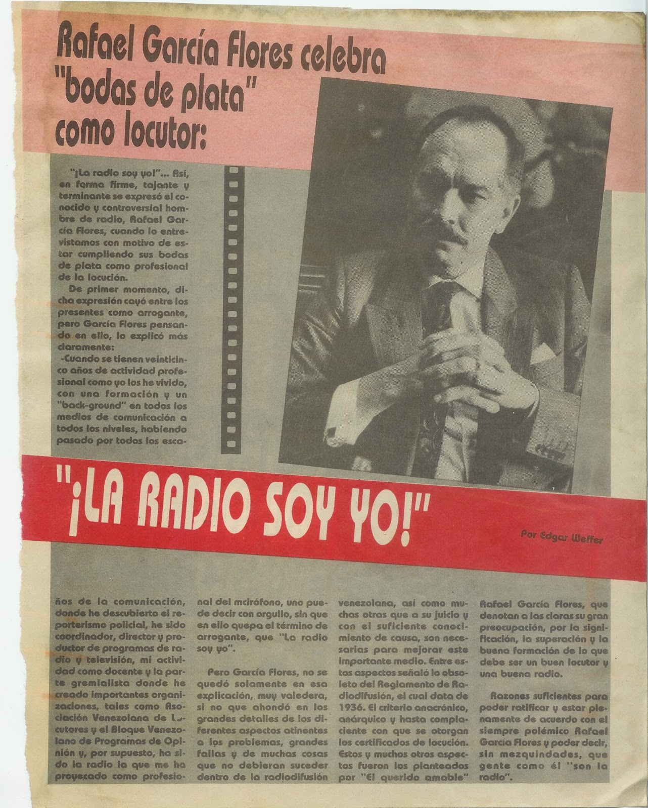 EN LA GRAFICA ACOMPAÑADO DE MI PADRE DON RAFAEL GARCIA CORNET (f) MI ORIGINAL INSPIRACION PARA LA LOCUCION, QUIEN TAMBIEN ERA LOCUTOR, FUNDADOR DE RADIO CORO, POSEEDOR DE UNA EXQUISITA VOZ Y DE UNA ESPECIAL ELEGANCIA EN EL TRATO CON SUS OYENTES.